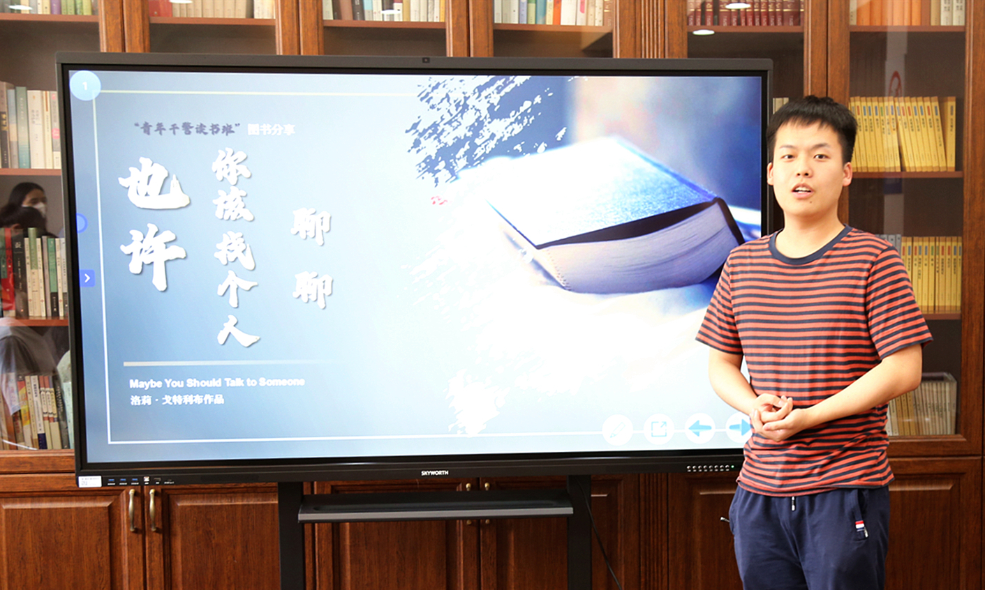 几位干警分享了自己喜爱的书,有关于心理,有关于生活,内容深刻且涉及范围广,在他们分享的过程中,我看到了阅读带给他们心境的成熟、生活的平衡与心灵的净化。热爱阅读,亦是热爱生活、热爱自己,通过阅读与自我沟通,提升思想认知与解决各种问题矛盾的能力。自应当,将阅读与学习作为终身的习惯,永无止境。(李元媛)