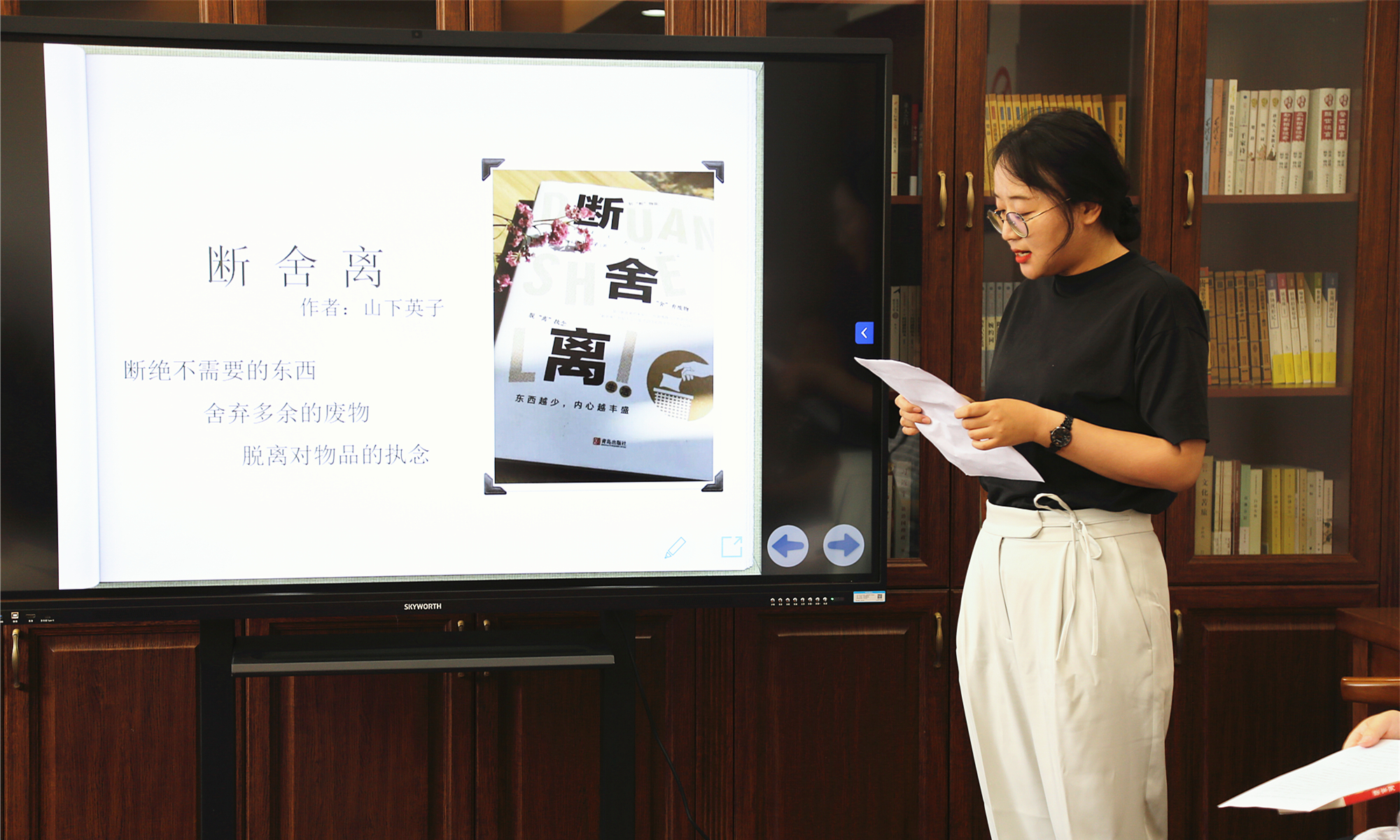 今天的读书会,从教我们敞开心扉与他人沟通解决心灵困境,到学习断舍离回归简单清爽的生活,再到新手妈妈对幼儿的心灵抚养,以及世界名着等,让我在别人的故事里思考了自己人生,在别人的境遇里解答了自己的困境,在别人的感知中寻找到对这世界的共鸣。感谢你们带来的精神盛宴!(刘攀)