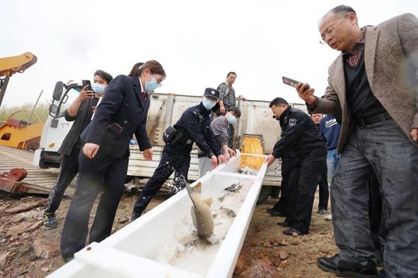 本网讯(通讯员 蔡宣)“希望自己能用实际行动来弥补曾经犯下的过错,也希望大家以我为戒,增强法律意识,不要非法捕捞,做一个遵纪守法的好公民……”近日,蔡甸区检察院、区公安分局、区农业农村局等相关单位联合开展公益诉讼鱼类增殖放流活动,将一起非法捕捞水产品案件的违法行为人刘某履行生态修复责任出资购买的鱼苗,放入汉江流域进行生态修复,使因违法犯罪行为受损害的渔业资源得到恢复,有效维护汉江生态环境。