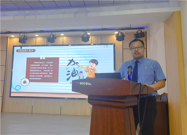 课堂上,肖必辉以《民法典》的立法背景为切入点,通过案例分析、互动问答等方式,运用通俗易懂的语言和深入浅出的生动案例,向同学们讲解了《民法典》的构成、民事行为能力以及《民法典》关于未成年人的权益保护等相关法律规定,带领同学们了解《民法典》,走进《民法典》,帮助学生们正确认识权利和义务,引导他们从小树立法治观念,养成自觉守法、遇事找法、解决问题靠法的思维习惯和行为方式。课堂上,同学们踊跃参与、各抒己见,在轻松活跃的氛围中充分认识到《民法典》与未成年人成长和保护的密切关系。