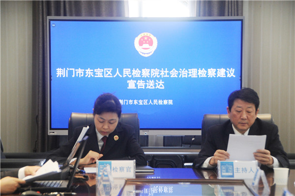 (通讯员刘于宏)5月23日,荆门市东宝区人民检察院针对市场监管部门不认真执行《中华人民共和国公司法》规定的行为,向有关单位发出社会治理《检察建议书》并进行公开宣告送达,并邀请人大代表、政协委员、人民监督员、相关单位代表对公开宣告进行全程现场见证和监督。