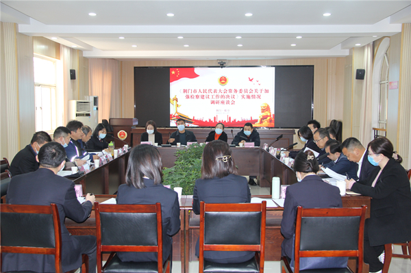 (通讯员 汤恋恋)11月17日上午,荆门市人大监察和司法委副主任委员孔小波率调研组一行到掇刀区检察院开展《荆门市人民代表大会常务委员会关于加强检察建议工作的决议》实施情况座谈会,荆门市检察院检察委员会专职委员曾慧、掇刀区人大常委会党组成员、副主任丁华成、掇刀区检察院党组书记、检察长胡多盛、区法院、区检察院、区公安分局、区司法局、区卫健局等九个区直相关单位具体负责人等参加会议。