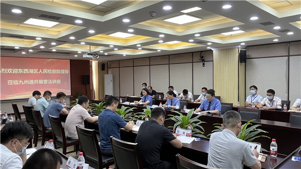 院党组成员、副检察长易珍荣从提高政治站位,持续深化平等保护理念;全面履行职责,全力营造良好法制环境;优化工作方式,精准提升检察服务质效;加大宣传力度,充分营造良好舆论环境四个方面入手,详细介绍了检察机关优化营商环境的职责,并就公司章程、公司印章管理、区别公司财产与个人财产、员工授权委托的管理等企业法律风险点的防控进行了深刻剖析,倡导员工爱岗敬业,企业合法合规经营,持续健康发展,共同打造一流企业。易珍荣副检察长表示,区检察院将从辖区经济发展大局出发,弘扬“有呼必应,无事不扰”的店小二精神,充分发挥检察职能,助力打造一流营商环境,为辖区各类市场主体办实事,解难题,为护航辖区企业发展提供更好的法治保障。