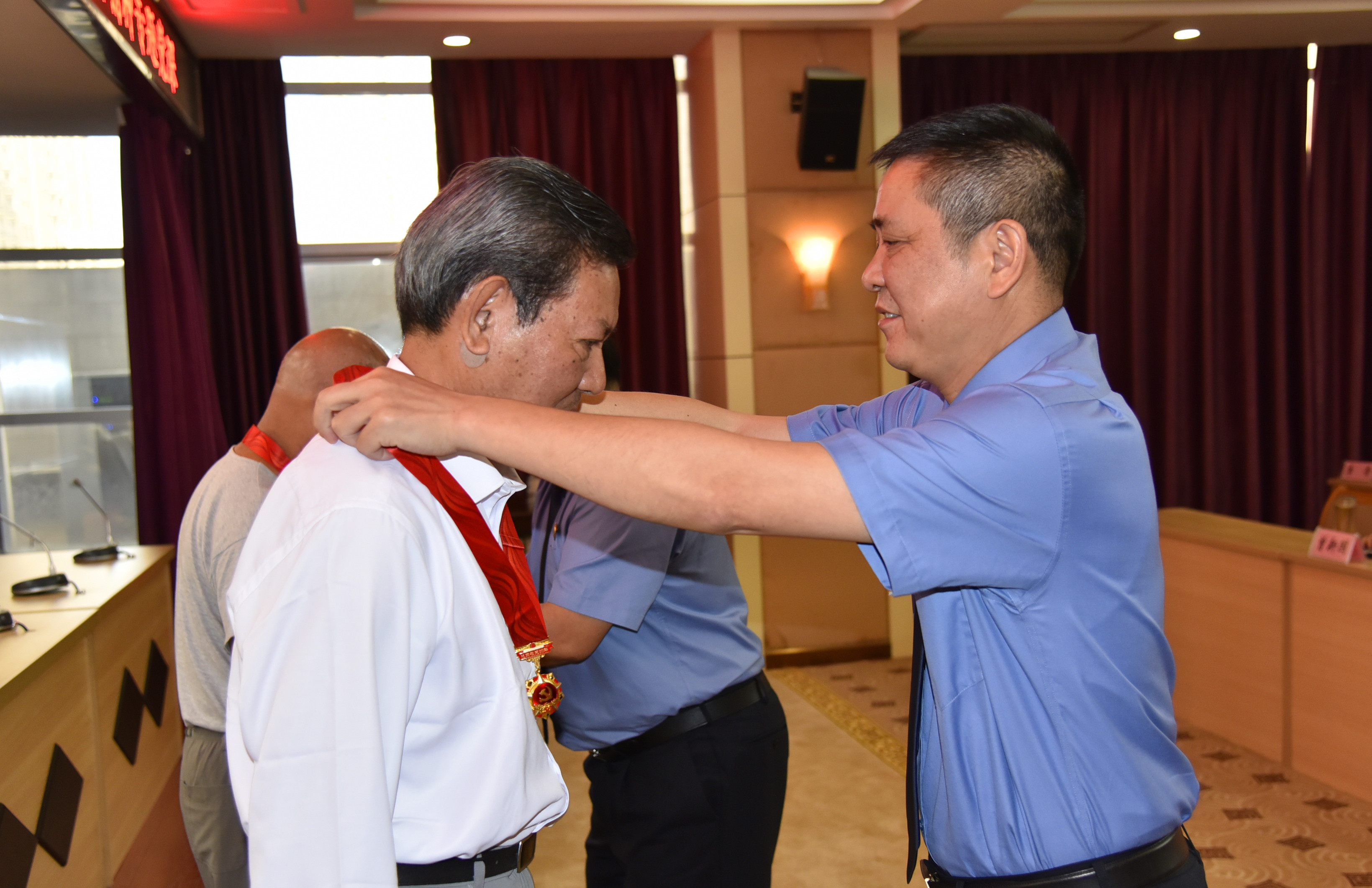 党组书记、检察长王晶、党组副书记、副检察长熊良荣分别为黄龙强、朱端矩两位老党员颁发了“光荣在党50年”纪念章。