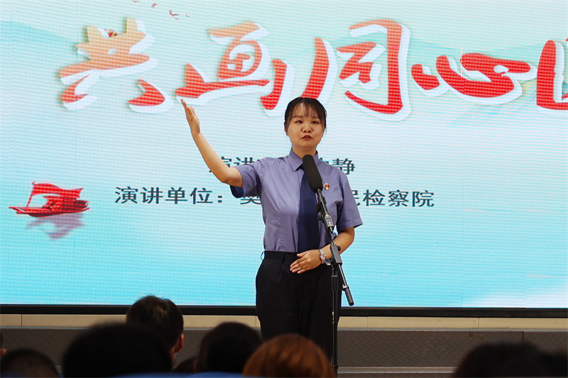第五检察部检察官助理边静以《小家与大国,共画同心圆》为题,生动讲述家风故事,从“小家”抒发“大”情怀,情感真挚动人,赢得全场的阵阵掌声,获得比赛的二等奖。