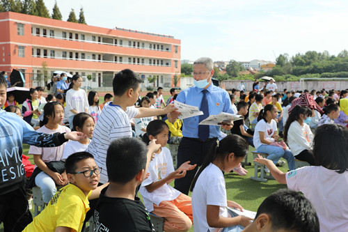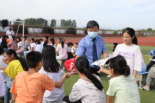为更好的将党史学习教育成果转化成工作实践,近日,樊城区检察院第二党支部以未成年人检察办公室与太平店检察室开展的法治进校园活动为契机,组织全体党员走进学校、走进社区,扎实开展“我为群众办实事”实践活动。