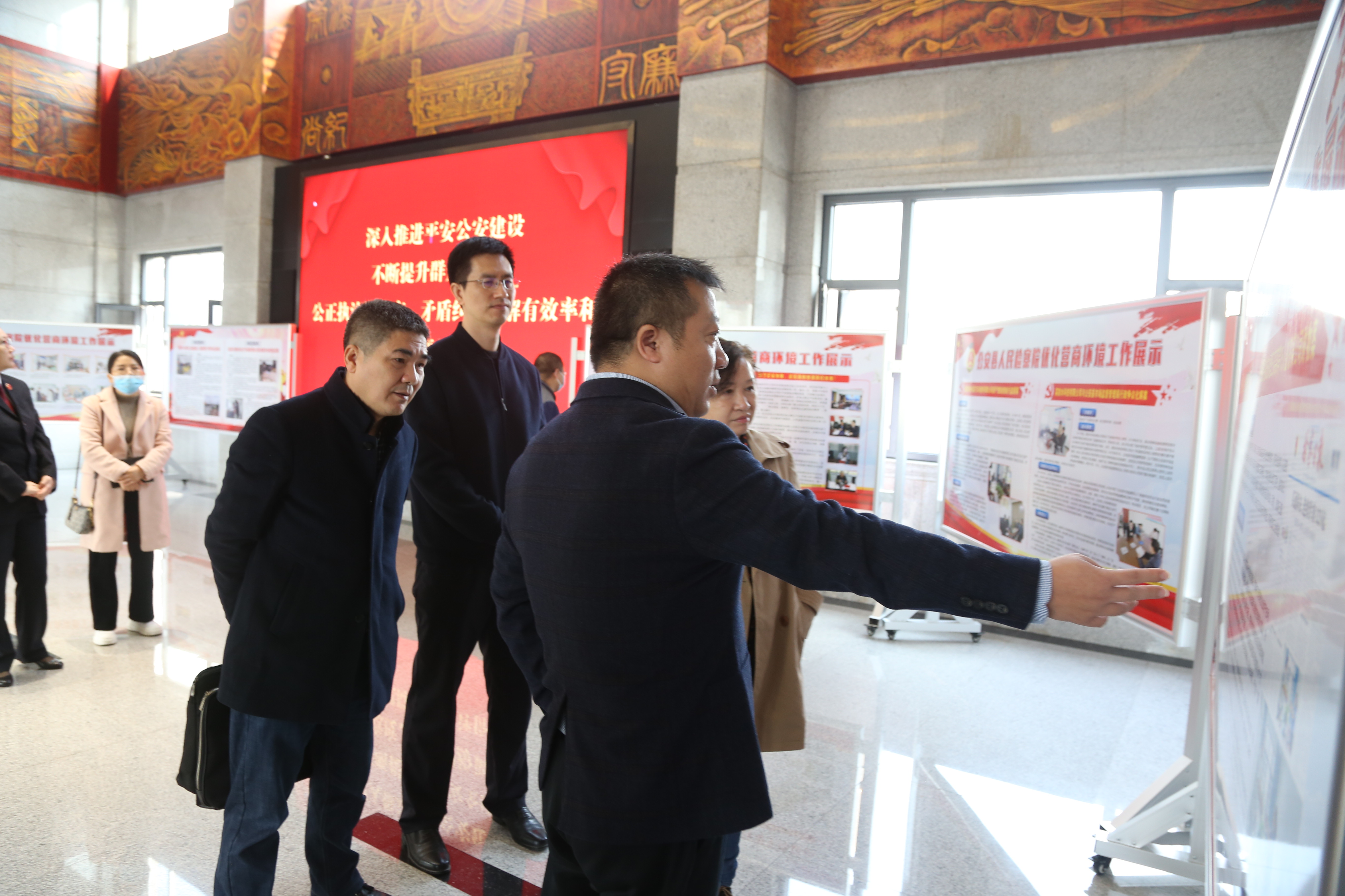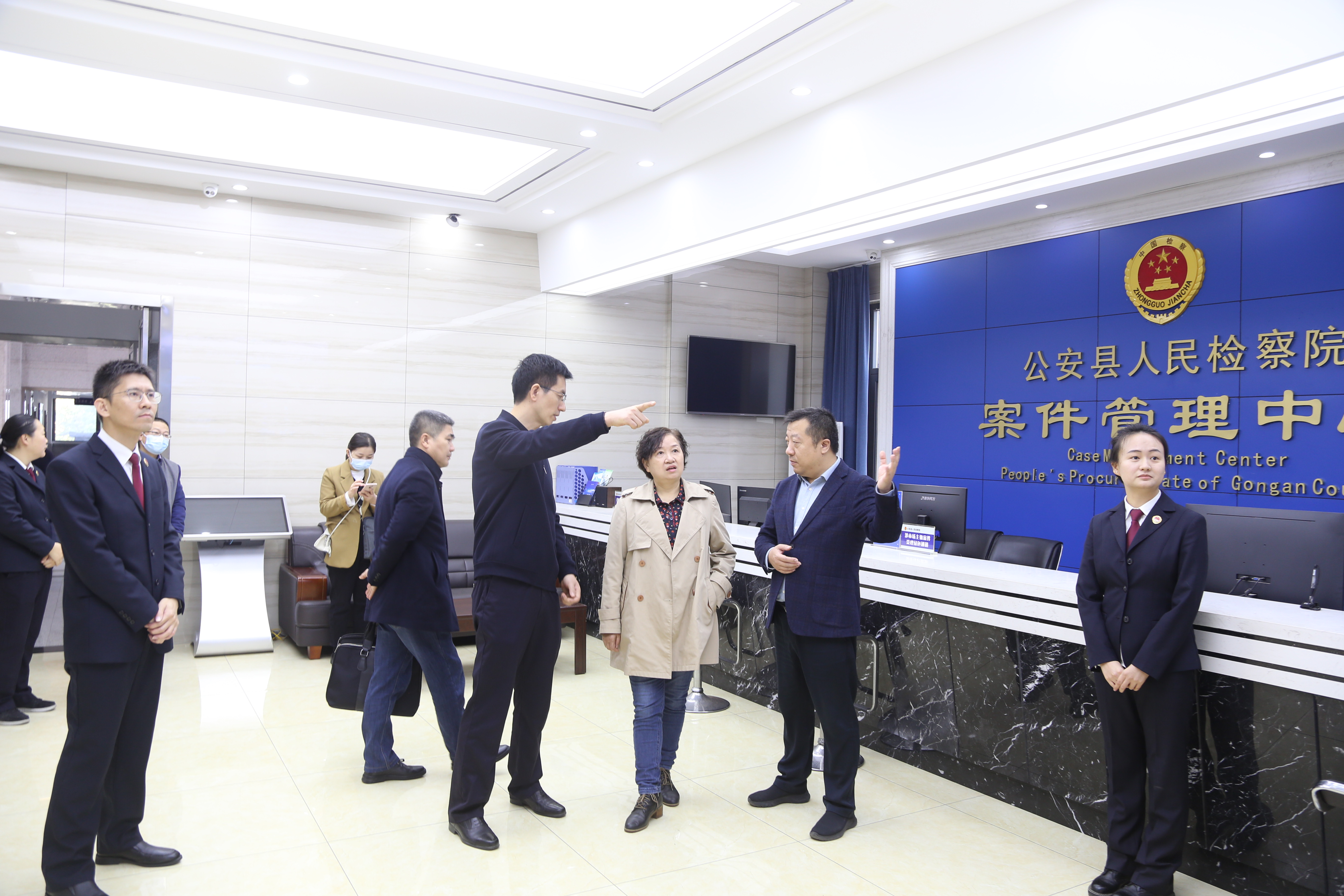 公安县检察院党组书记、检察长杨道山陪同邓凤梅一行,参观该院12309检察服务中心、案件管理中心、办案工作区、图书室,听取该院2022年度参与法治政府建设工作的情况介绍,查看信访维稳工作台账、典型案例培育撰写、法治宣传等方面资料,并抽查了院领导和检察官进行座谈。