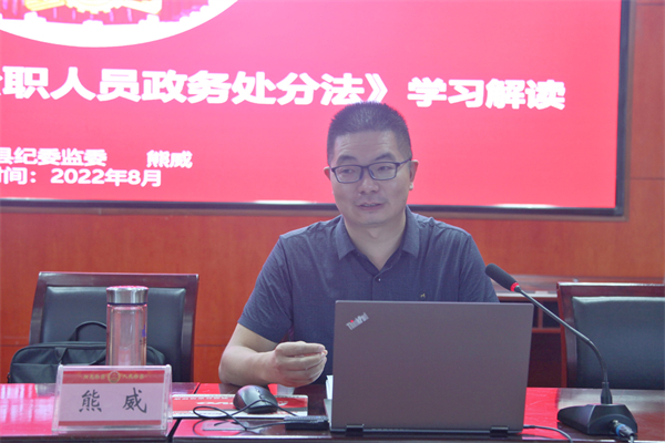 8月30日,该院邀请红安县监委委员、纪委监委案件审理室主任熊威作“《中华人民共和国政务处分法》学习解读”的辅导报告,主要从新法的框架、新法“四化亮点”、新法的基础点、新法的紧密相关点等四个方面,结合典型案例对该法进行了深入浅出的讲解,并从政治要求、组织要求、廉洁要求、群众要求、工作要求、道德要求等方面强调了全面从严治党的重要性和必要性。报告最后,熊威以“看灯塔,明方向,口耳手脚心里过,规章制度常践行,犹豫不前莫迈错,清风拂月安心意,大志功名量福祸”的心得为结束语,为全院干警答疑解惑。