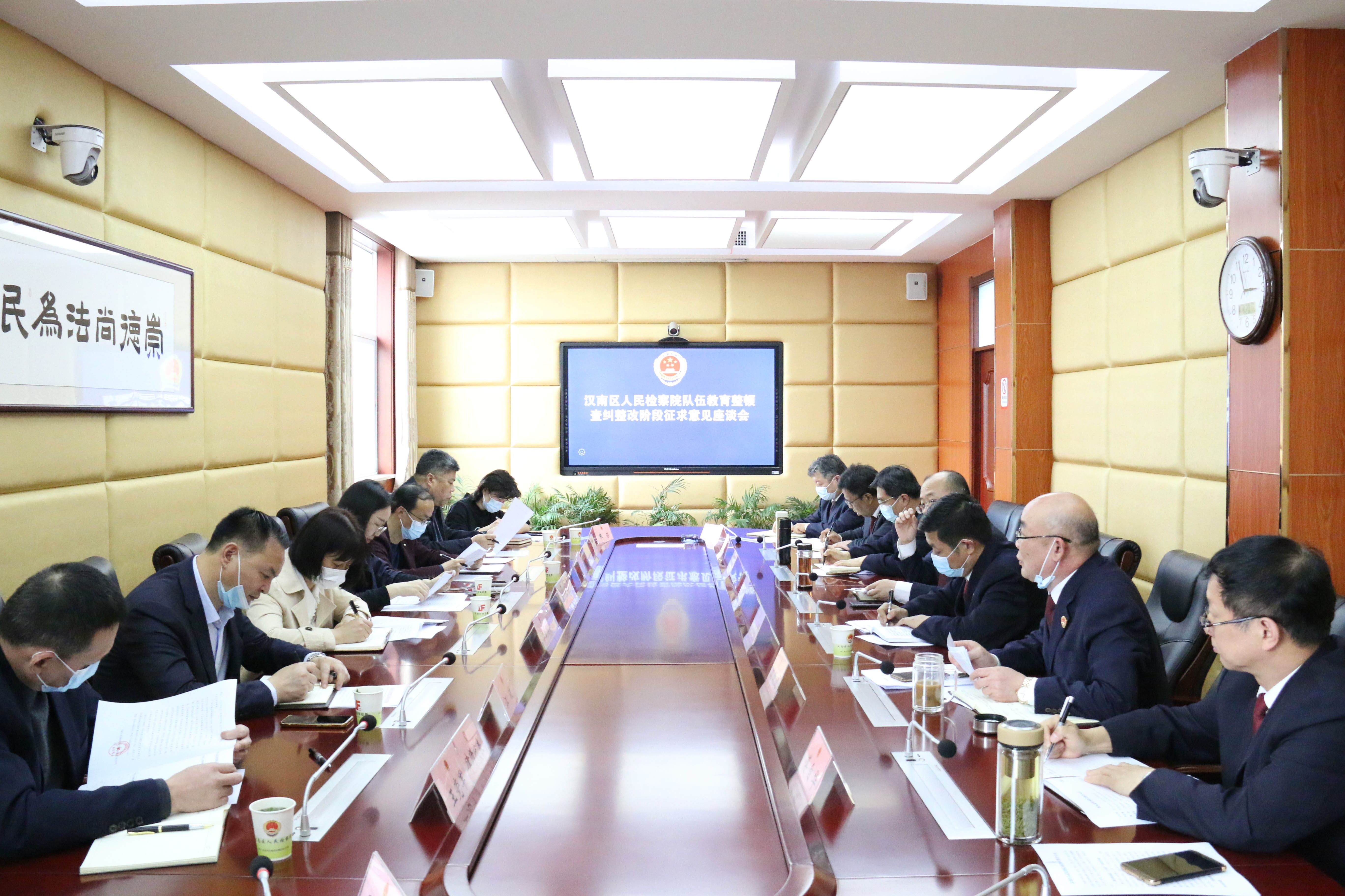 在听取与会代表意见建议后,市院驻汉南区院队伍教育整顿督导组组长陈砚龙表示,各界代表们的意见建议很有针对性、参考性和启发性。下一步,汉南区检察院将对各位代表指出的问题、提出的意见建议逐条进行整理、分类、归纳,列出问题清单,重点抓好搞好汇总梳理、抓好问题整改、抓好意见建议的吸收利用三个方面的工作,深刻剖析原因症结,通过教育整顿解决检察队伍存在的突出问题,不断提升司法公信力和群众满意度,努力打造一支党和人民信得过、靠得住、能放心的检察铁军。