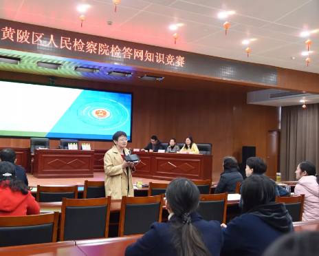 (通讯员:常妍)为全面推进检答网使用,备战武汉市检察机关检答网业务知识竞赛,12月3日下午,黄陂区检察院在二楼视频会议室举办了检答网业务知识现场对抗赛。此前,该院组织开展了第一轮筛选,6名选手脱颖而出,参加到了今天的三对三现场模拟赛。党组书记、检察长刘桃荣和院领导现场督战,30余名青年干警观摩此次比赛。