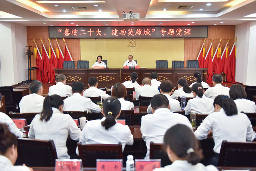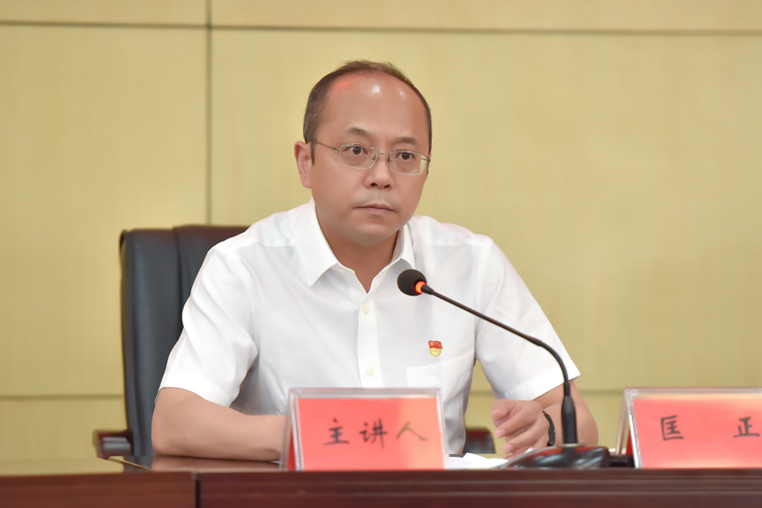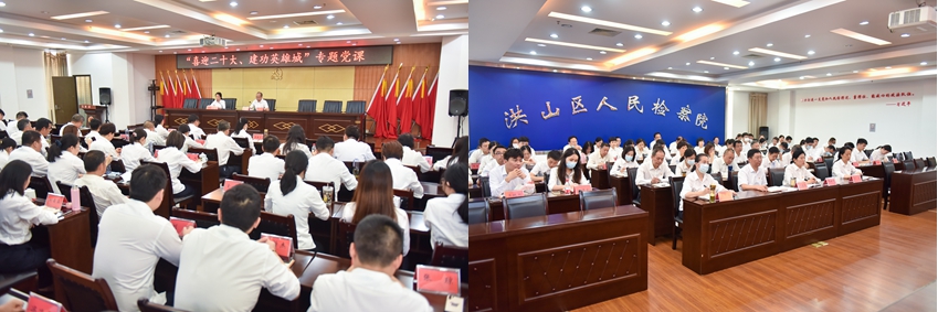 本网讯(通讯员 汪绍)6月30日下午,在“七一”建党节来临之际,洪山区人民检察院党组书记、检察长匡正以“做一个幸福的人”为题为全体干警讲授“喜迎二十大、建功英雄城”专题党课。院党组成员、副检察长余婧主持活动。