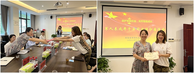 本网讯(通讯员 周婧)近日,为深入贯彻落实《关于在检察工作中加强军人家庭未成年子女保护工作的意见》要求,江岸区人民检察院联合联勤保障部队机关幼儿园,举行军人家庭未成年子女司法保护工作座谈会暨法治副园长聘任仪式。联勤保障部队中心干事李爽,湖北省律协未成年人保护委员会主任、京师武汉律师公益委员会主任李春生以及军队幼儿园教职工、家长代表,该院蒲公英工作室负责人出席座谈会。联勤保障部队机关幼儿园园长潘莉主持座谈会。