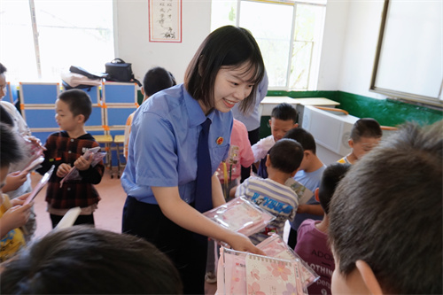 “校园暴力可以防,方法掌握要适当,求助师长来帮忙,自我保护有保障......”巡讲即将结束时,孩子们一起和未检干警大声念出了《预防校园暴力小口诀》,再次提醒同学们要珍惜友谊和校园生活,对校园暴力说不!干警们也给孩子们发放了提前准备好的精美小礼物。
