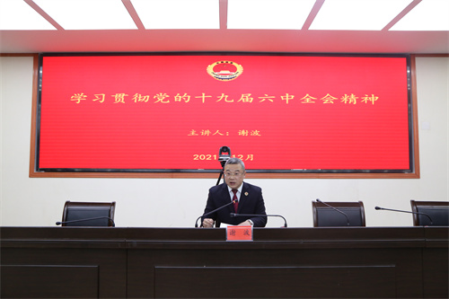 随后,该院党组书记、检察长谢波主持召开会议,专题传达学习贯彻党的十九届六中全会精神。