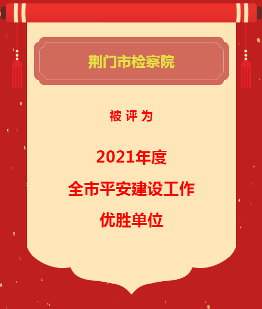 荆门市检察院被评为2021年度全市平安建设工作优胜单位
