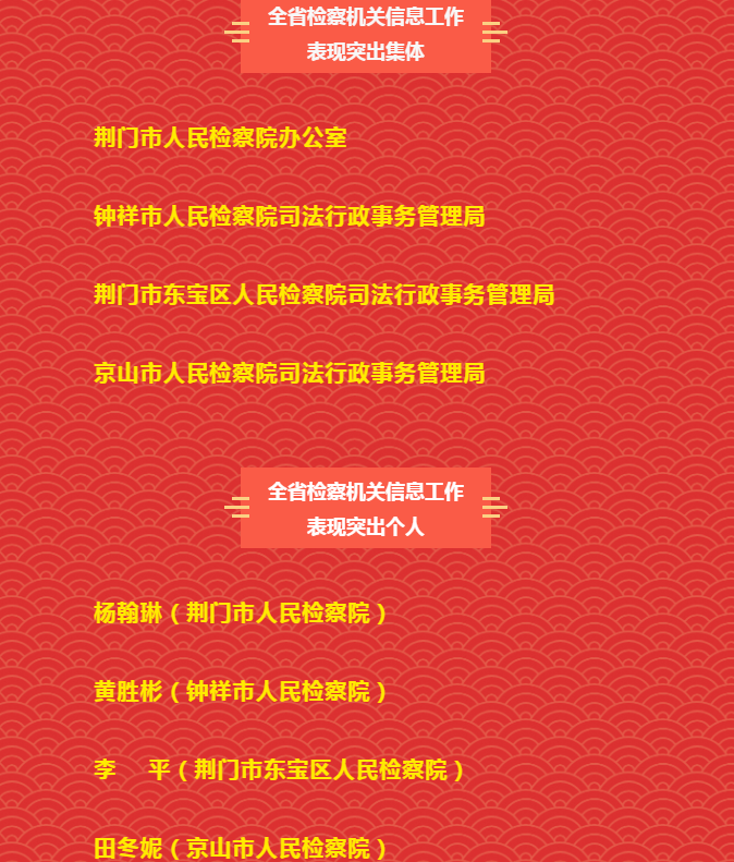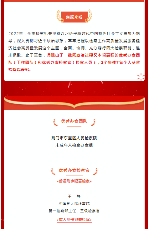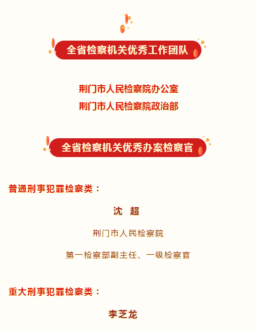 喜报:荆门市检察机关2个集体7名个人获省检察院表彰!