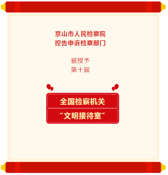 京山市人民检察院控告申诉检察部门被授予第十届全国检察机关“文明接待室”