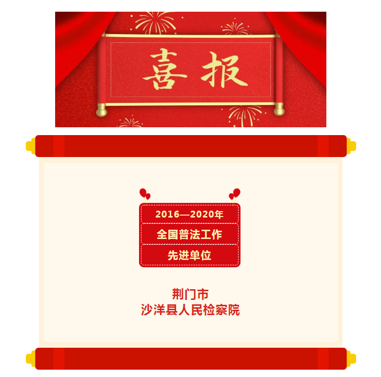 荆门市沙洋县人民检察院被评为2016—2020年全国普法工作先进单位