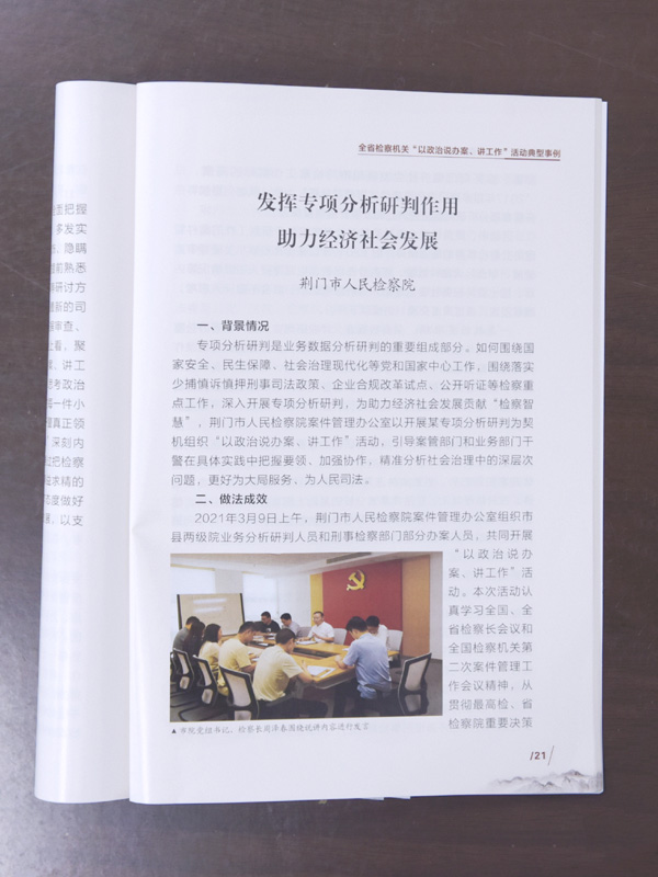 荆门市检察院《发挥专项分析研判作用 助力经济社会发展》入选全省检察机关“以政治说办案、讲工作”活动典型事例
