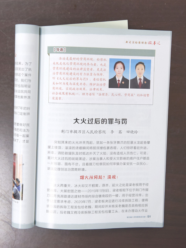 荆门市掇刀区检察院办案故事《大火过后的罪与罚》在省检察院《新司法检察理念故事汇》刊登