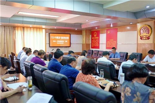 6月10日,区院党组书记、检察长郑轩在全区连续作了两场宣讲报告,向来自区人大、纪检监察部门的一百余名领导干部宣讲“三个规定”,并在宣讲会后组织相关领导干部签订《严格遵守“三个规定”公开承诺书》。