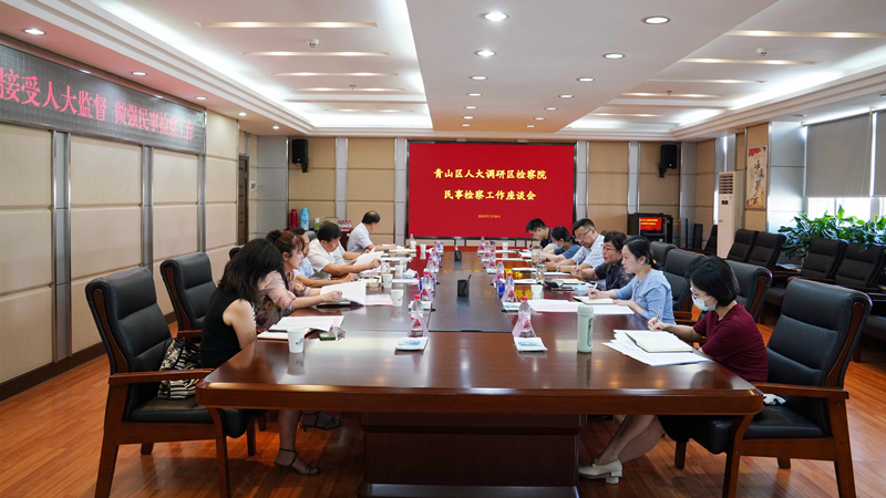 本网讯(通讯员 陈醒)“区检察院与时俱进,充分运用数字化、大数据等赋能民事检察,发挥检法两家成立的‘法律监督工作室’作用,深化司法协作配合,共同解决好老百姓的急难愁盼。”“区检察院在办理民事检察监督案件中,既保障了老百姓合法权益,也考虑到企业正常经营,充分体现了以人民为中心的发展思想!”7月26日下午,青山区人大常委会副主任尹鹏、法制委员会主任委员林东一行6人,到青山区检察院调研民事检察工作。区检察院党组成员、副检察长胡仪君,党组成员、政治部主任陶庆生参加调研座谈。
