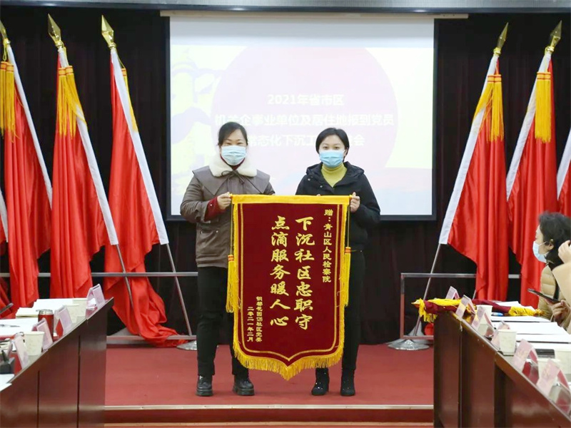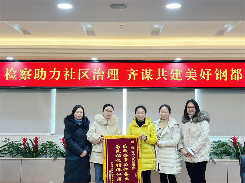 本网讯(通讯员 梁晨)岁暮天寒,窗外虽寒风凛冽,屋内却暖意融融。1月17日上午,钢都花园街道党工委委员、人大工委主任谢小平带领126社区书记王彦等一行4人,来到青山区检察院,专程送来了新年第一面锦旗,对该院常态化下沉和支援社区疫情防控工作、运用检察监督职能帮助提升社区治理水平表示感谢。