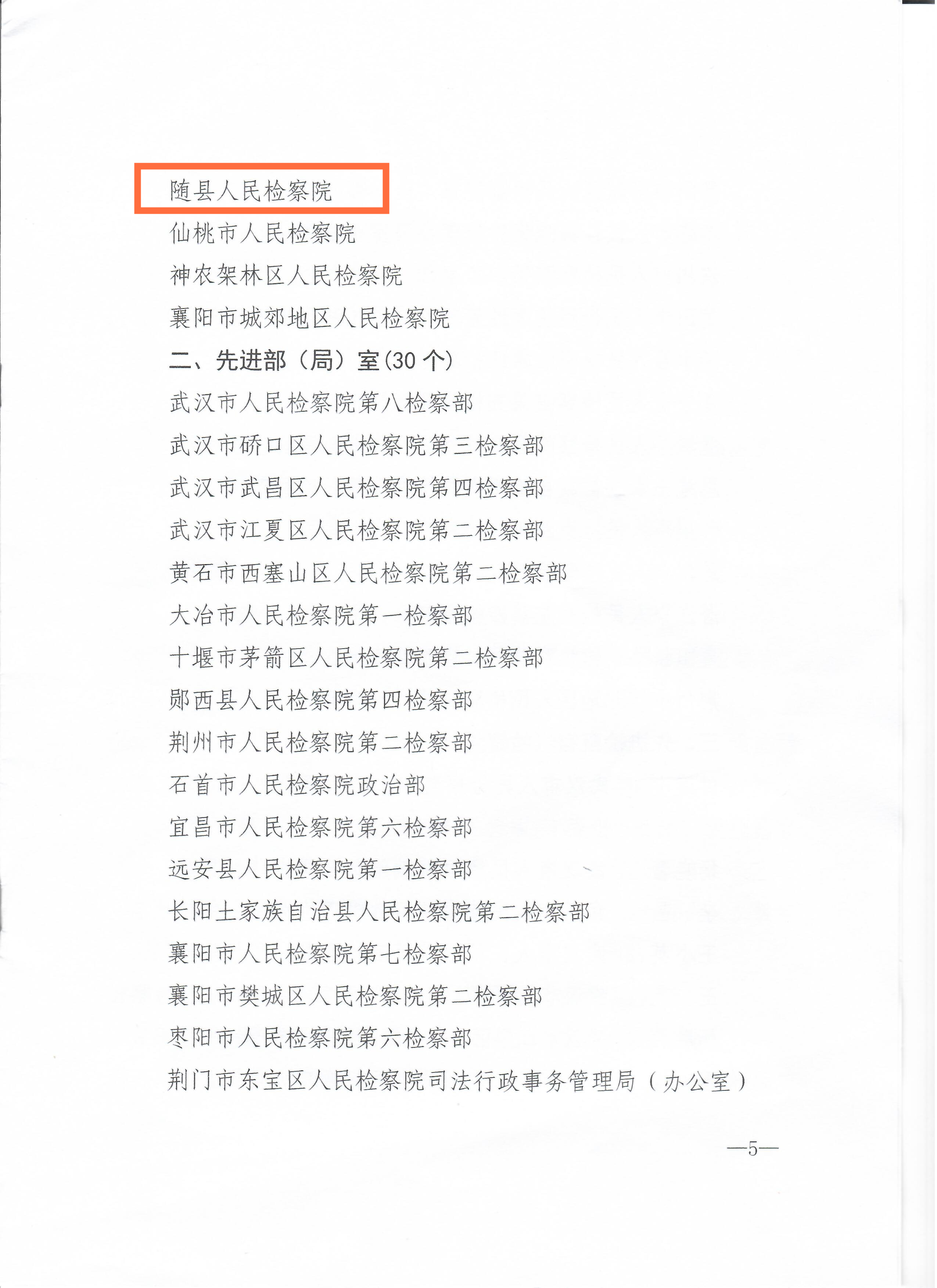 近日,随县人民检察院被省人力资源和社会保障厅、省人民检察院授予“先进基层检察院”称号。