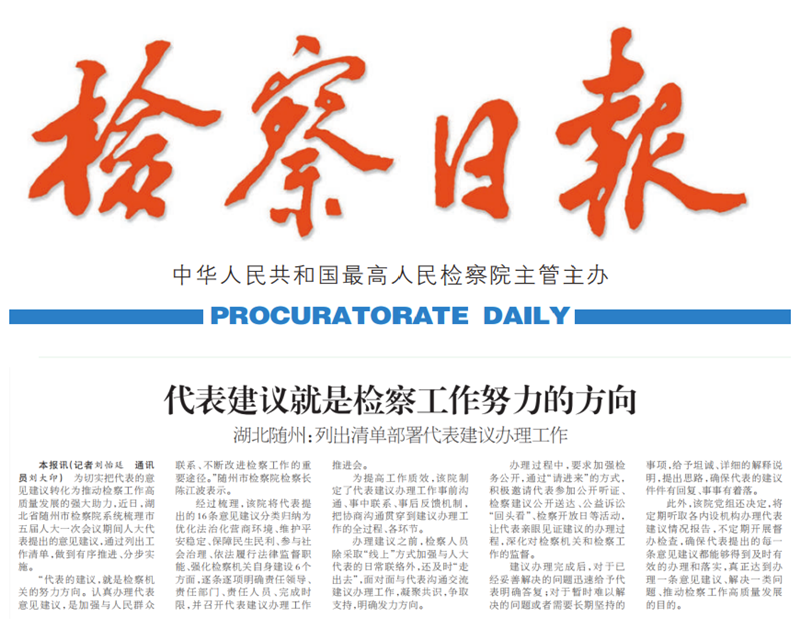 媒体关注丨《检察日报》刊登:代表建议就是检察工作努力的方向