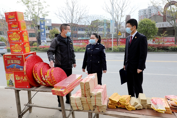 清明将至,为落实好最高检关于安全生产的“八号检察建议”,进一步加强团风县清明节期间烟花爆竹安全监管工作,4月1日至2日,团风县检察院联合县应急管理局组织开展清明节烟花爆竹安全公益诉讼专项监督,对烟花爆竹经营点进行走访排查,主动寻查安全隐患线索,切实打击非法储存、销售烟花爆竹行为。