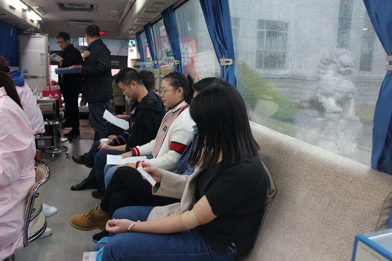 献血现场,院党组成员、派驻纪检组组长颜碧辉带头献血,检察官干警踊跃参加,大家冒着雨不惧寒冷早早的在献血车外排起长队。