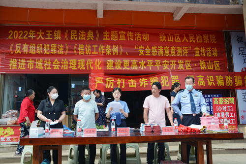 为深入贯彻习近平法治思想,特别是习近平总书记关于加强民法典学习宣传的重要指示精神,让民法典走到群众身边、走进群众心里。5月27日,铁山区人民检察院来到大王镇中心市场开展“美好生活·民法典相伴”主题宣传活动。