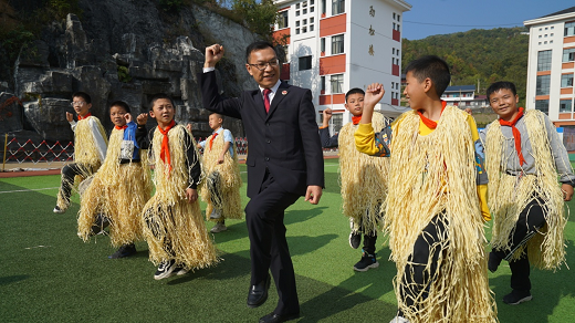 在傅家堰中小学,法治副校长带领干警化身“学徒”,跟着同学们学习了土家民族特色舞蹈——茅古斯。大家穿上鲜艳的民族服饰,载歌载舞、其乐融融。