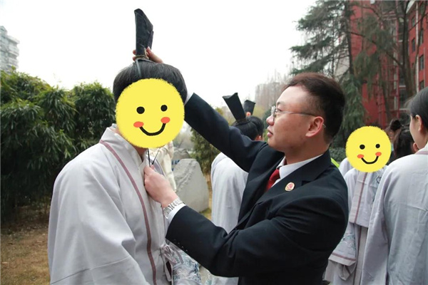 进入冠礼仪式,检察官们细致地为观护对象整理好着装,并为其带上礼帽、插上发簪。随后,检察官从法律角度讲述了“成人”所应承担的责任,告诫观护对象要遵纪守法、修养品行,做一个有责任、有担当的成年人,深刻认识到自己的角色、身份,承担自己应尽的责任。