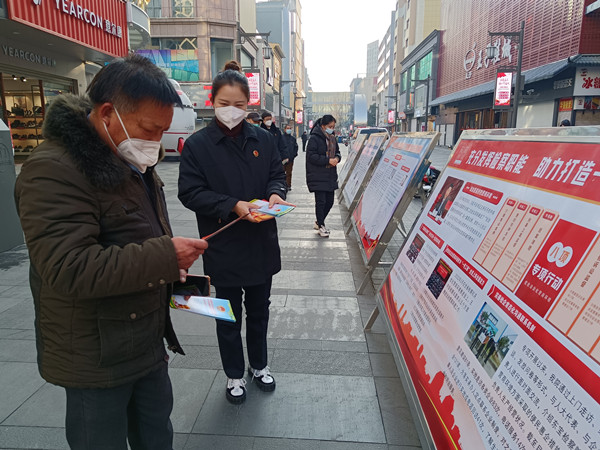(通讯员 刘于宏)为进一步提升人民群众对平安建设工作的知晓率和参与度,营造人人参与平安建设、人人共享平安成果的浓厚氛围,12月19日,东宝区检察院检察人员来到中天街,积极参加由东宝区委政法委牵头举办的平安建设成果宣传巡回展。