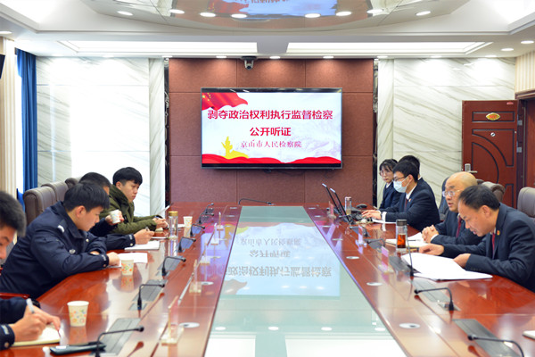 为进一步推进剥夺政治权利刑罚执行规范化,形成长效机制,该院于11月26日举行了公开听证会。听证会由该院党组成员、副检察长何家平主持,邀请人大代表、政协委员、人民监督员作为听证员参加。京山市公安局治安大队、各乡镇派出所及京山市司法局参与听证会。