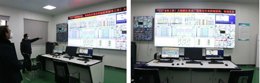 水厂工作人员带领大家来到水厂的中央控制室,在这里能监控到取水、加药、消毒的整个制水过程。