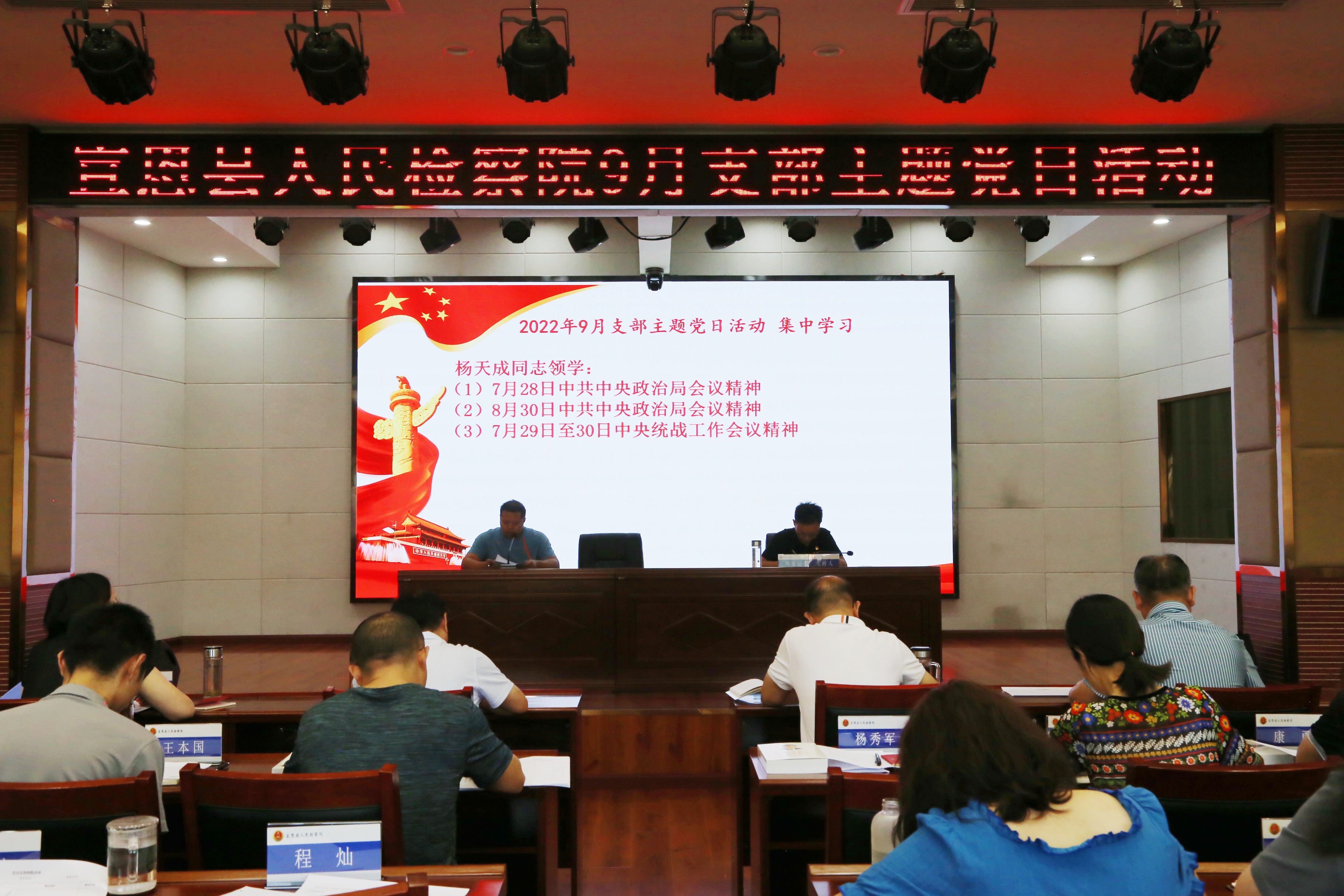 活动中,全体干警集中学习了中共恩施州委宣传部、中共恩施州委组织部、中共恩施州委理论信息中心编订的“支部主题党日”学习资料第九期内容,并安排本月自学内容。
