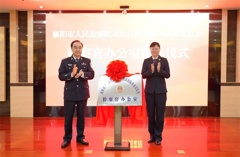 为全面落实《中共中央关于加强新时代检察机关法律监督工作的意见》,深入践行党的二十大报告中专门强调的“加强检察机关法律监督工作”要求,11月8日上午,“襄阳市人民检察院司法行政强制隔离戒毒监督检察官办公室”(下称“检察官办公室”)在湖北省襄州强制隔离戒毒所(下称“省襄州强戒所”)挂牌成立,这是在湖北省司法厅直管强制隔离戒毒所中设立的首个“检察官办公室”,湖北省戒毒管理局党委书记、局长何选才,襄阳市人民检察院党组书记、检察长梁莉出席揭牌仪式并揭牌。