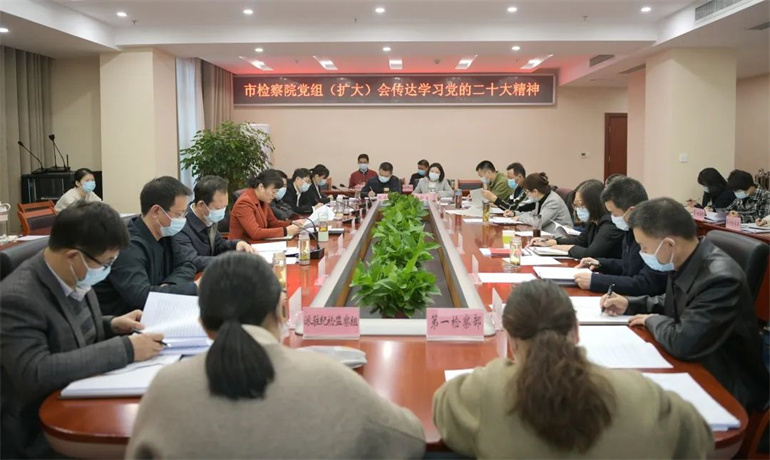 会议组织学习了习近平在中国共产党第二十次全国代表大会上的报告、中国共产党第二十次全国代表大会关于十九届中央委员会报告的决议、关于《中国共产党章程(修正案)》的决议精神等,传达了省委、市委以及最高检、省院学习党的二十大精神的措施要求。