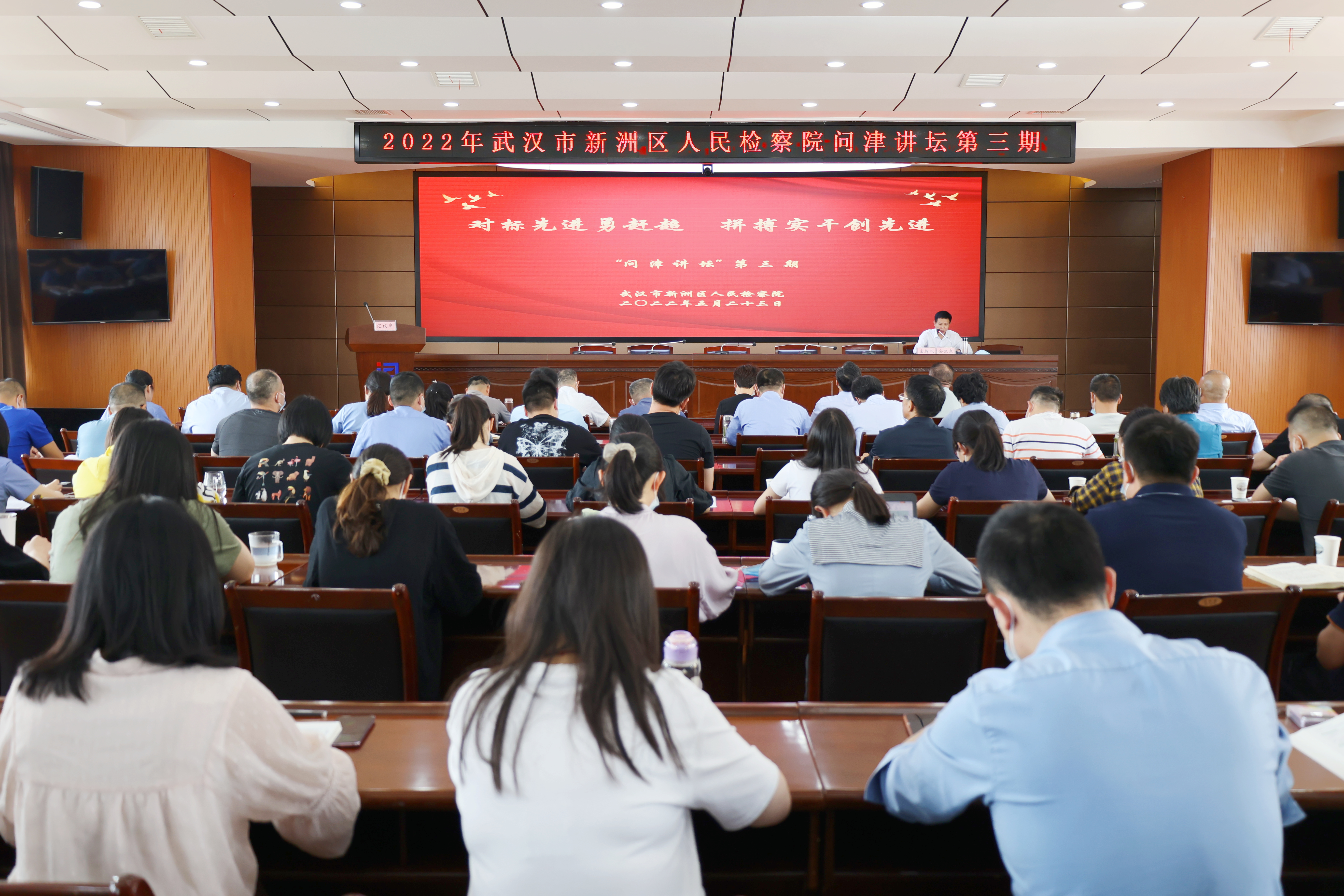 本网讯(通讯员:吕继强)为进一步贯彻落实高检院、省、市院关于质量建设年、素能提升年、品牌创建年的工作要求,提升工作质效,拓宽工作思路,2022年5月23日,新洲区检察院举办以“对标先进勇赶超 拼搏实干创先进”为主题的第三期问津讲坛活动。院领导班子成员和全体检察干警参加会议。院党组书记、检察长顾玉梅同志作总结讲话,会议由院党组成员、副检察长余汉泉同志主持。