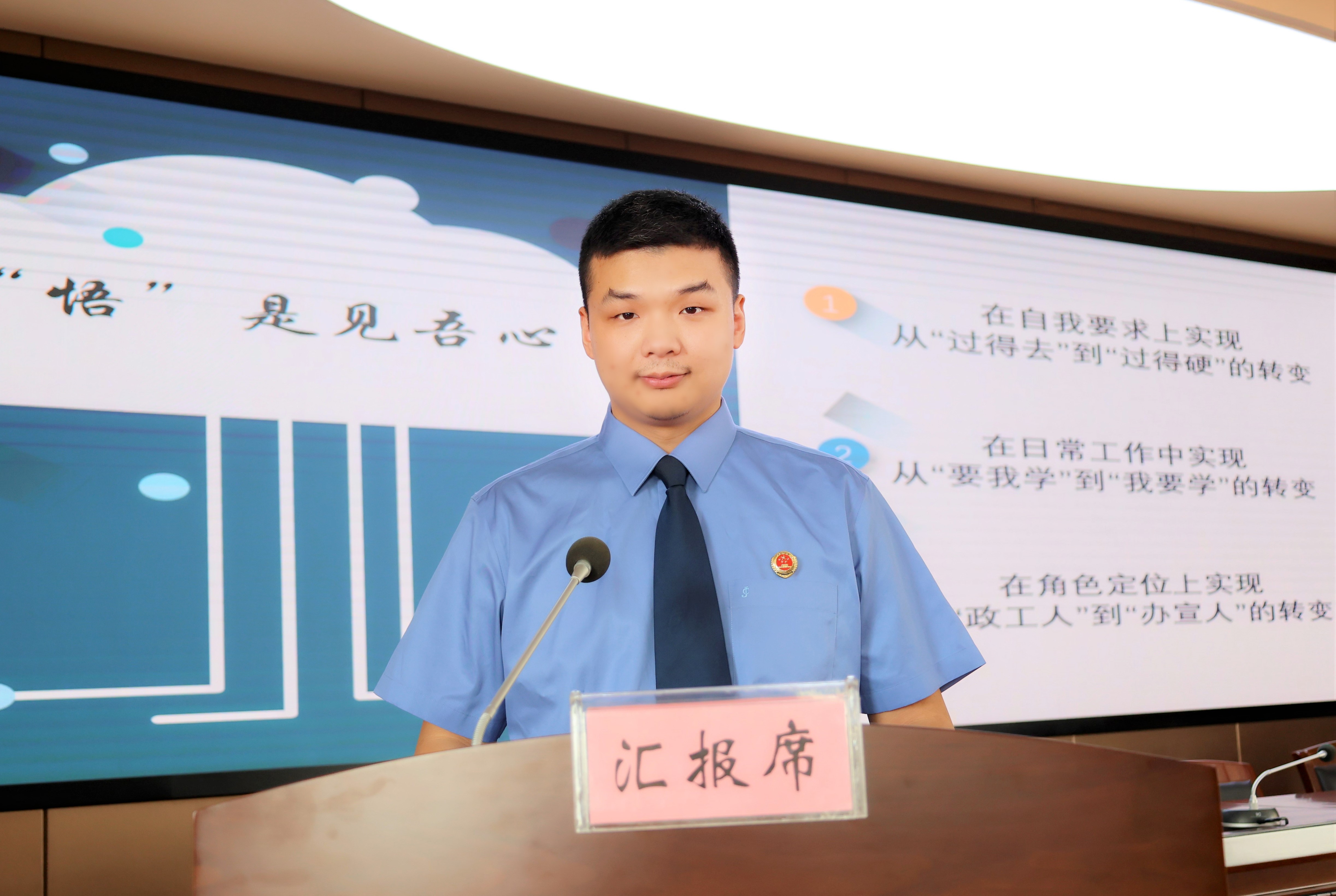 上周,十分有幸跟随院领导前往大悟县检察院参加交流学习,不仅学到了经验,启发了思路,也开阔了眼界,明确了目标。我今天分享的题目是“‘悟’是见吾心”,大悟之行我有三点体会和感悟,一是在自我要求上实现从“过得去”到“过得硬”的转变;二是在日常工作中实现从“要我学”到“我要学”的转变;三是在角色定位上实现从“政工人”到“办宣人”的转变。