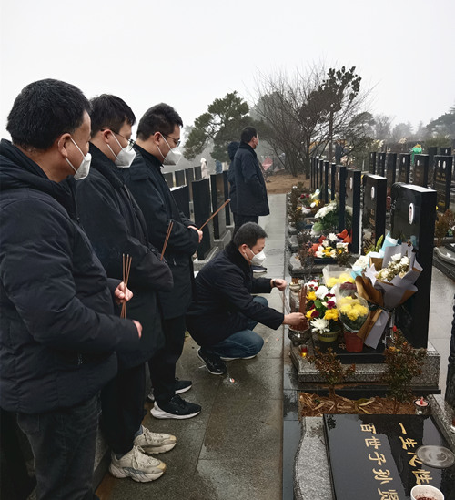 丹心照日月,丰碑铸忠魂。上午9时,部分干警代表来到襄阳市功德陵公墓祭奠梅华明同志。怀着崇敬与哀思,干警们依次敬献鲜花,全体鞠躬默哀。