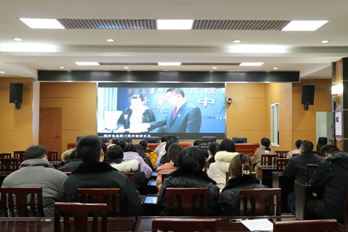 活动的最后,与会干警集中观看专题片《梅华明:永远冲锋的“老黄牛”》。