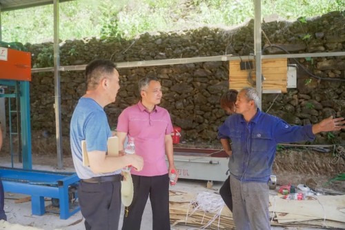 在鑫强木业有限公司,蒋志刚检察长向企业负责人详细询问企业生产经营情况。