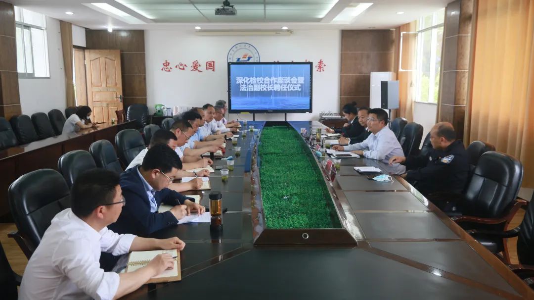 为全面加强未成年人检察工作,积极探索“检校共建”长效工作机制,持续推动“一号检察建议”落地见效,推进未成年人权益保护与犯罪预防工作深入开展,4月27日,县检察院联合县教育局召开深化检校合作座谈会暨法治副校长聘任仪式。会议由县教育局局长李双红主持,县检察院党组书记、检察长涂永红、县公安局内保大队教导员杜俊峰及高中、城区部分中小学校长参加会议。